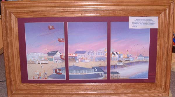 The triple panel print depicts the Boardwalk from the 1940's to the 1960's
