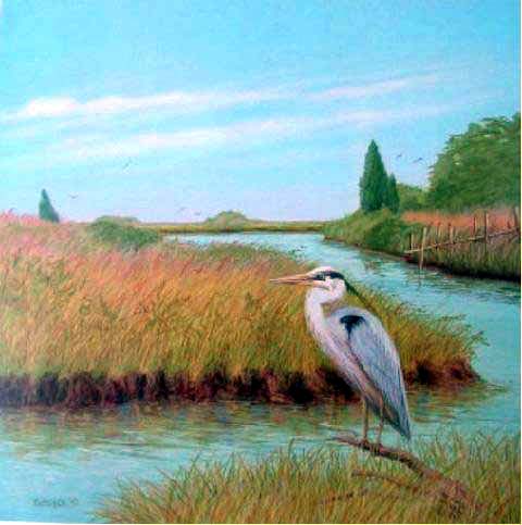 Great Blue Heron in its natural habitat along the Jersey Shore.